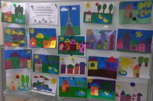 Конкурсные работы 4А класса (кл.руководитель Галкина Т.Г.) на тему "Сюжетная аппликация из геометрических фигур "Праздничный город".
