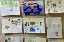 Рисунки 3Б класса (кл.руководитель Хафизова С.Н.) на тему "Осторожно, тонкий лёд!"