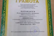 13 нче Гимназия «Балтырган " фольклор ансамбле «Казан сандугачы -2021»шәһәр конкурсының район этабында 2 нче урынны яулады.