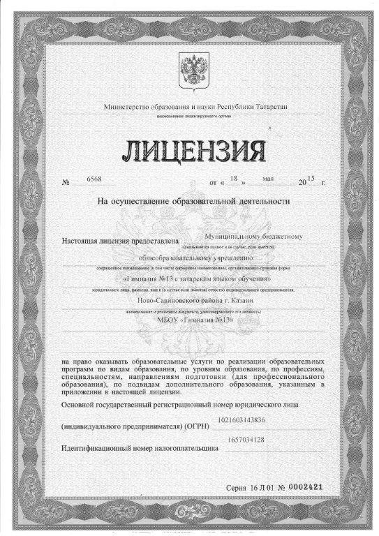 Муниципальное бюджетное общеобразовательное учреждение «Гимназия №13 с татарским языком обучения» Ново-Савиновского района г.Казани/ Казан шәһәре Яңа Савин районының "Татар телендә белем бирүче 13 нче гимназия" гомуми белем муниципаль бюджет учреждениесе