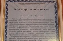 По итогам городского семинара для руководителей образовательных организаций, директор школы и педагогический коллектив был отмечен Благодарственным письмом Управления образования Исполнительного комитета муниципального образования города Казани.