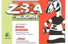 Поздравляем Выборнова Даниила, ученика 6 Б класса, с победой в детской игровой развлекательной программе "Полосатоя Зебра"! Желаем дальнейших успехов!