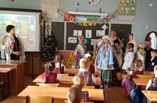Сегодня наш замечательный фольклорный ансамбль под руководством Хайруллиной Марии Владимировны поздравил ребят 1-3 классов с сочельником! Артисты в костюмах выступили перед классами с песнями, колядками.