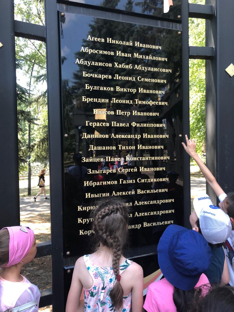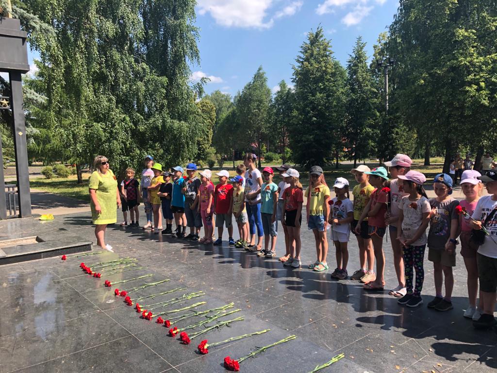 22 июня в пришкольном лагере прошли мероприятия посвященные Дню памяти и скорби. Утром прошла линейка «Мы помним, мы скорбим» сопровождаемая показом медиапрезентаций и тематических роликов. Затем состоялась акция «К фронтовикам с благодарностью». Ребята посетили Мемориальный комплекс Московского района г. Казани в Парке Урицкого и возложили цветы к памятнику погибшим в годы Великой Отечественной войны.