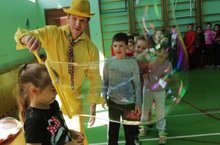 Ребята пришкольного лагеря «Непоседы» стали участниками красочного представления. Гости продемонстрировали пузыри разных размеров: от самых маленьких до гигантских. Каждый желающий мог не только поучаствовать в создании пузырей, но и побывать внутри одного из них.