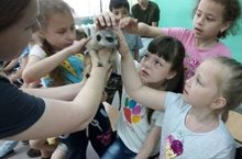 Сегодня в гости в пришкольный лагер приехал "Трогательный зоопарк, в котором множество разных зверюшек. Дети с удовольствием посмотрели, покормили и погдадили животных. Ребята остались очень довольны.
