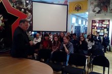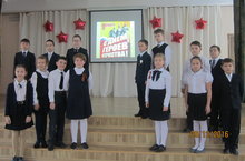 В актовом зале школе учащиеся 4-а класса выступили перед ребятами начальной школы. Они подготовили сообщения о своих родственниках, которые участвовали в Великой Отечественной войне. Прозвучали стихи и песни о войне. Весь подготовленный материал будет храниться в школьном музее «Татарстан-фронту. Татарстан- Победе!».