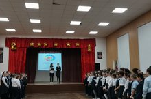 Сегодня в актовом зале прошла линейка для 1-11 классов,посвященная 2021 году - году родных языков и народного единства.