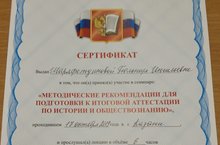 Педагог нашей школы Шаряфетдинова Гюльнара Ингильевна приняла участие в семинаре "Методические рекомендации для подготовки к итоговой аттестации по истории и обществознаннию".