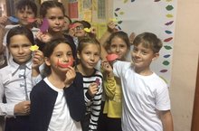Сегодня прошло посвящение в первоклассники. Детям подарила закладки, тетрадки и расписание уроков. Учащиеся школы подготовили для первоклассников спектакль "Пингвины".