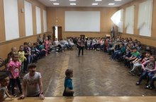 Сегодня все ребята-жители города Солнца приобщались к прекрасному. Им не пришлось для этого покидать школу. У нас в гостях был театр. Всем очень понравился их спектакль "Пингвины". А до обеда дети с удовольствием посмотрели мультфильм "Два хвоста".