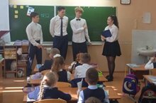 В рамках подготовки ко Дню Учителя педагогический 11А класс в 1-4 классах провел классные часы на тему «Учитель- профессия на все времена".