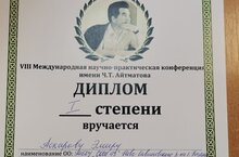 10 декабря учащийся 7А класса нашей школы принял участие в VIII международной научно-практической конференции оимени Ч.Айттматова и занял первое место. Поздравляем Эмир и его научного руководителя Елхину Л.В. с победой. Молодцы! Так держать!