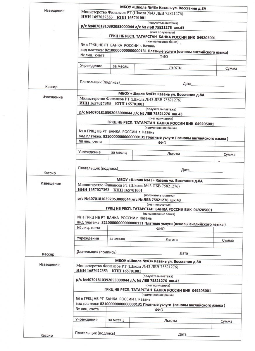 Образцы квитанций: Школа будущего первоклассника Основы грамматики английского языка