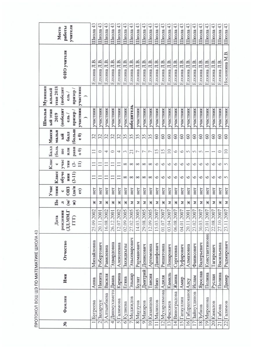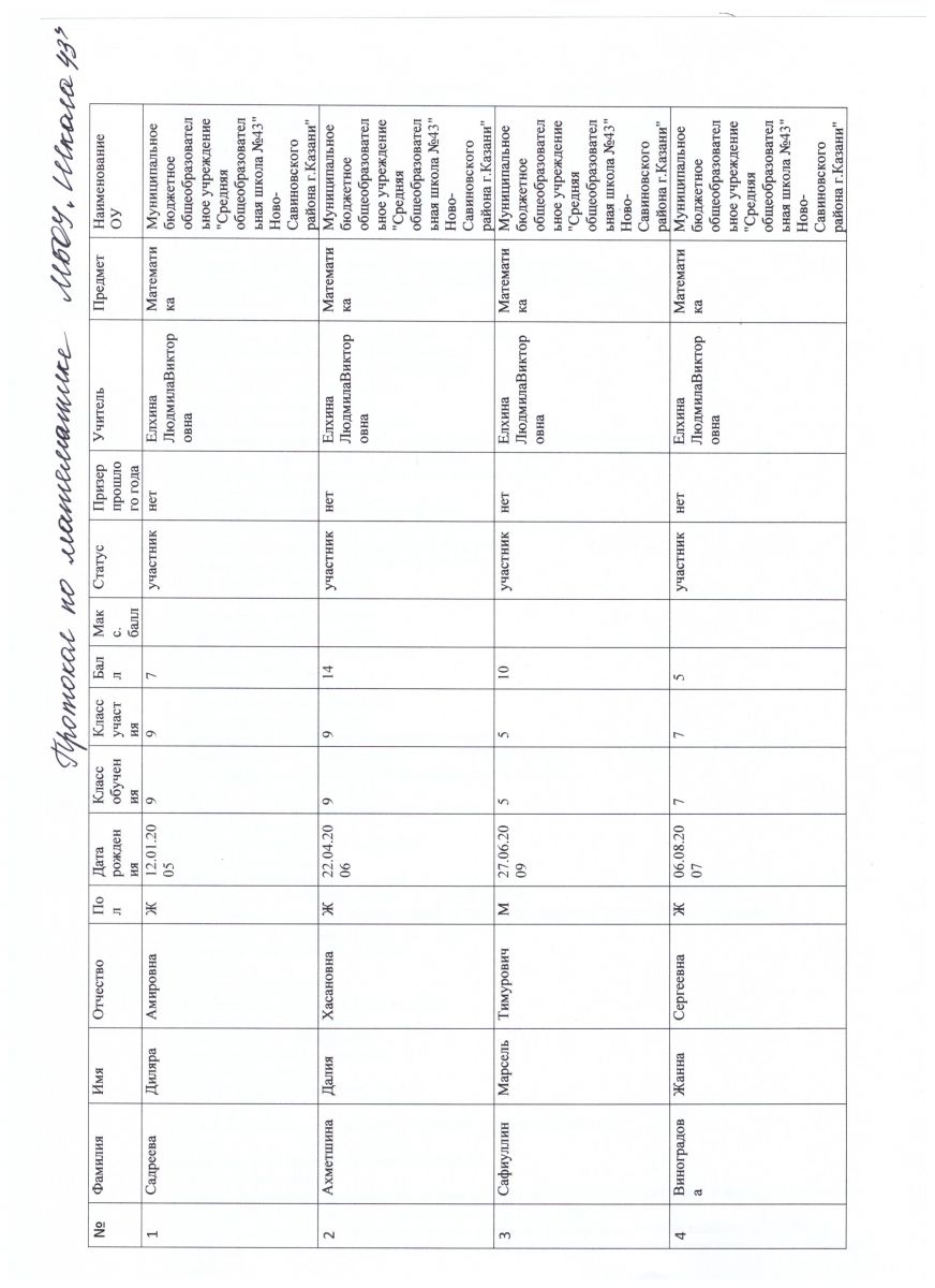 протокол олимпиады по математике
