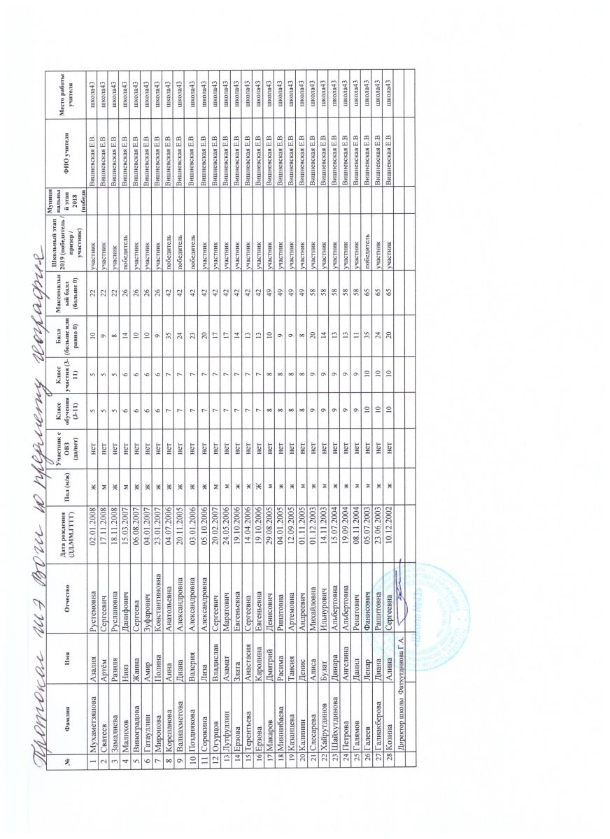 Итоги школьного этапа:
