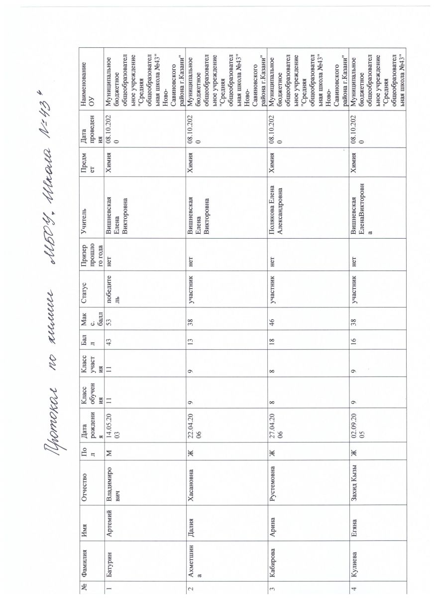 Химия Итоговый протокол