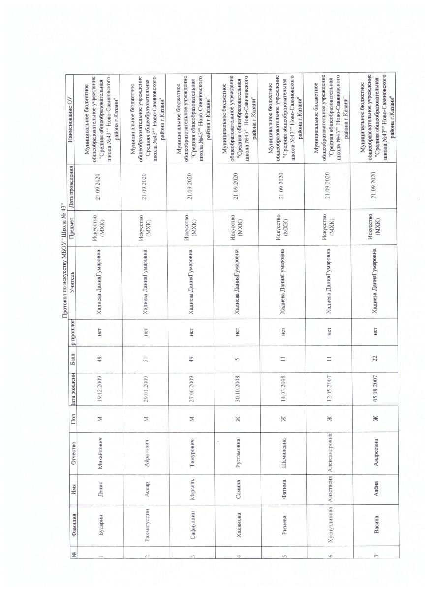 Искусство (МХК) Итоговый протокол
