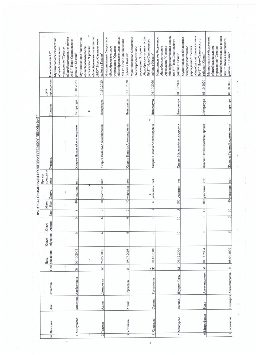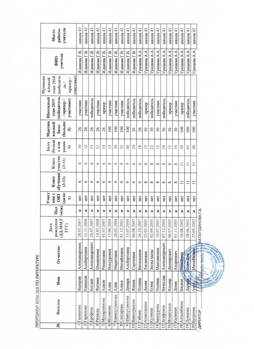 протокол олимпиады по литературе