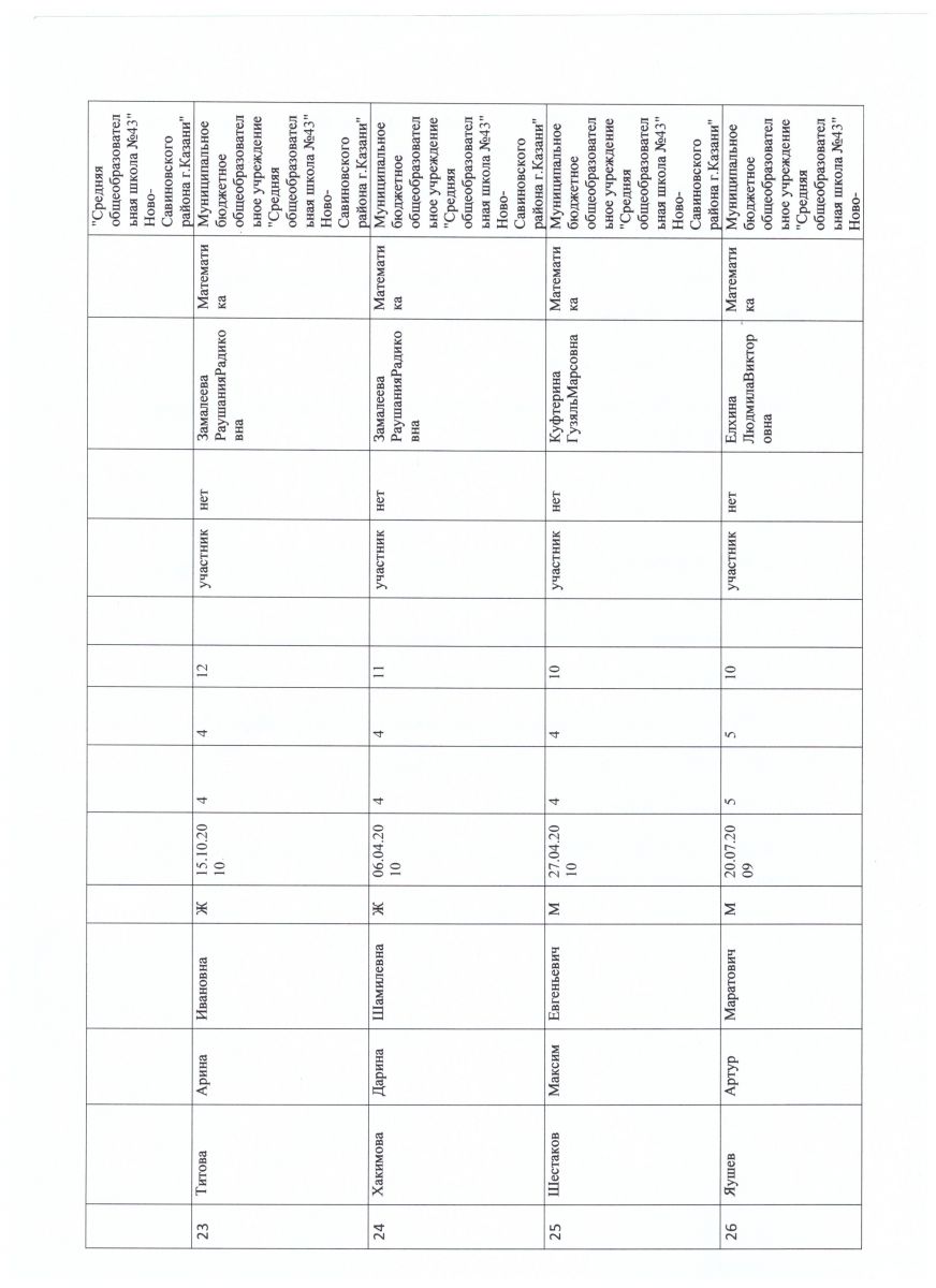 Математика Итоговый протокол
