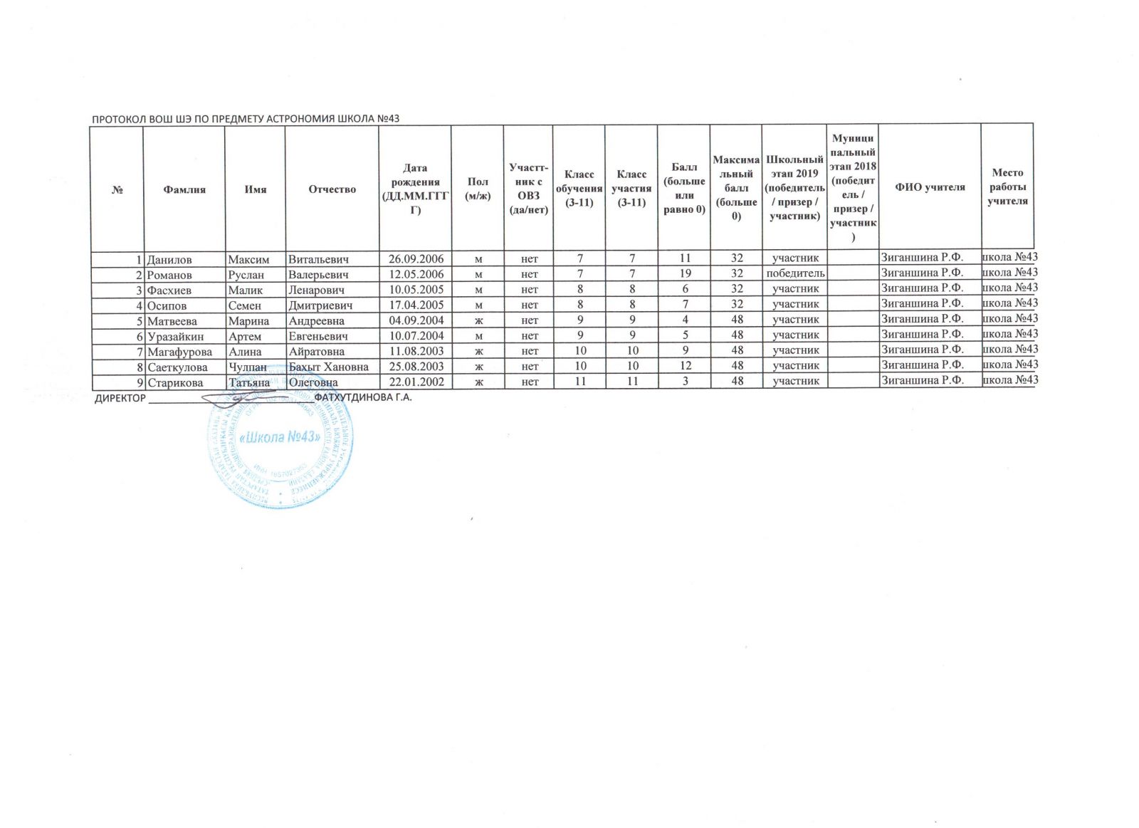 Астрономия Итоговый протокол