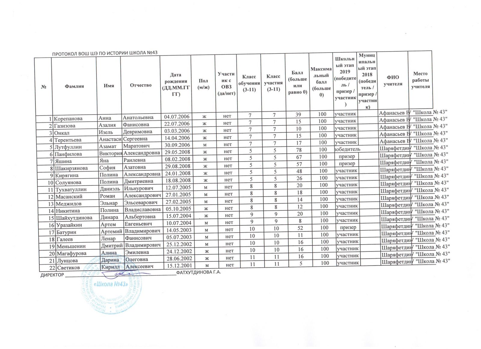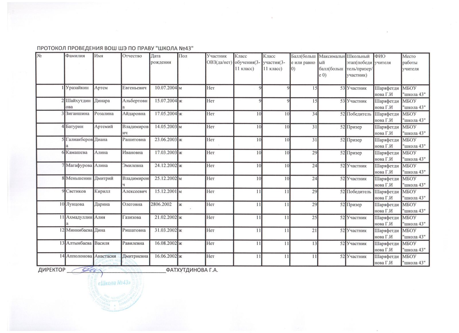Физика Итоговый протокол