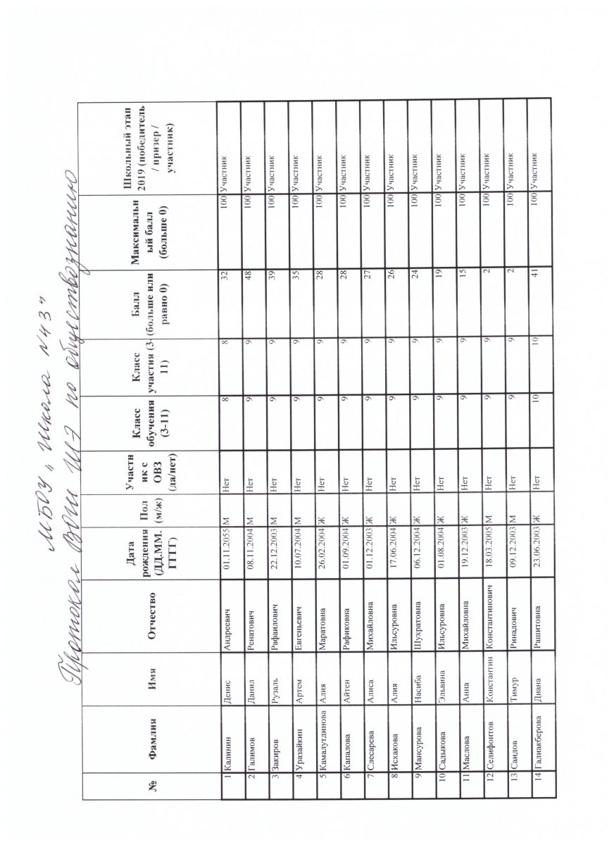протокол олимпиадЫ по обществознанию