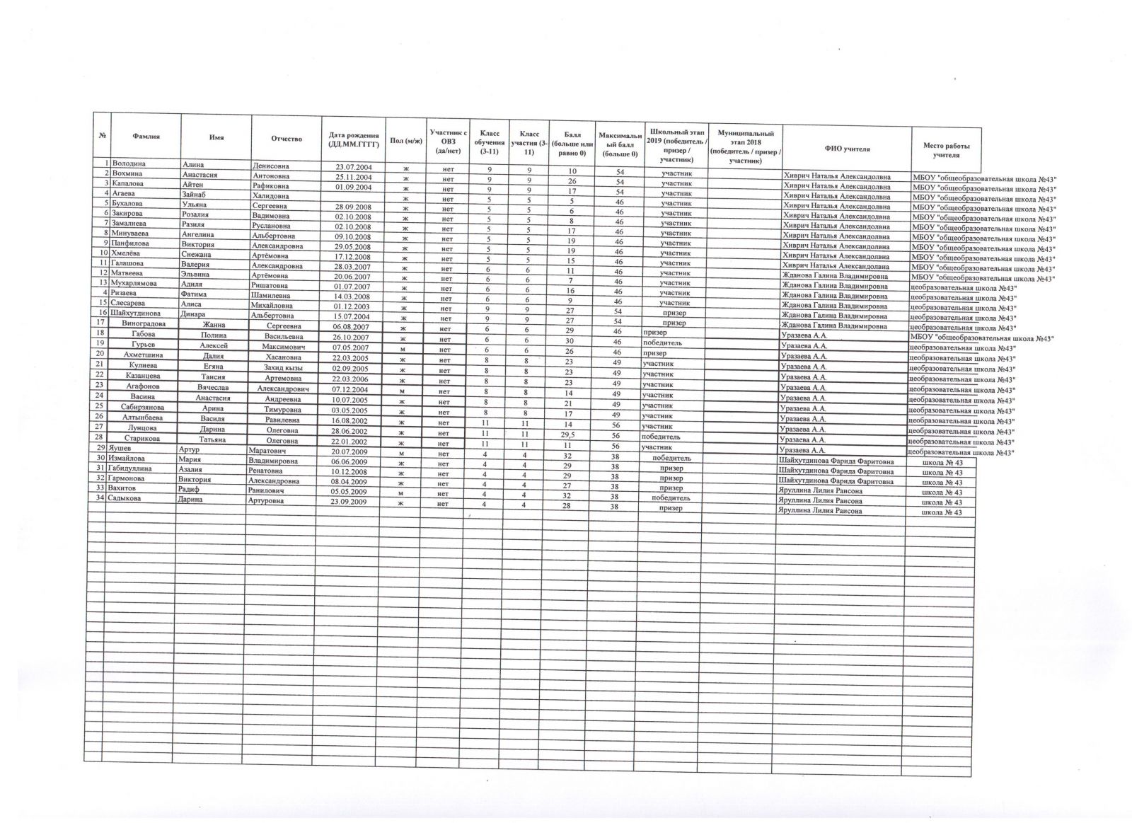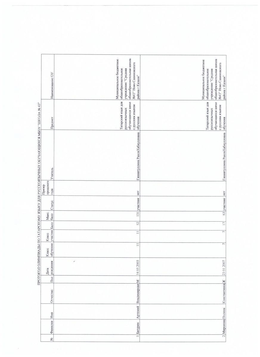 протокол олимпиады по родному татарскому языку.
