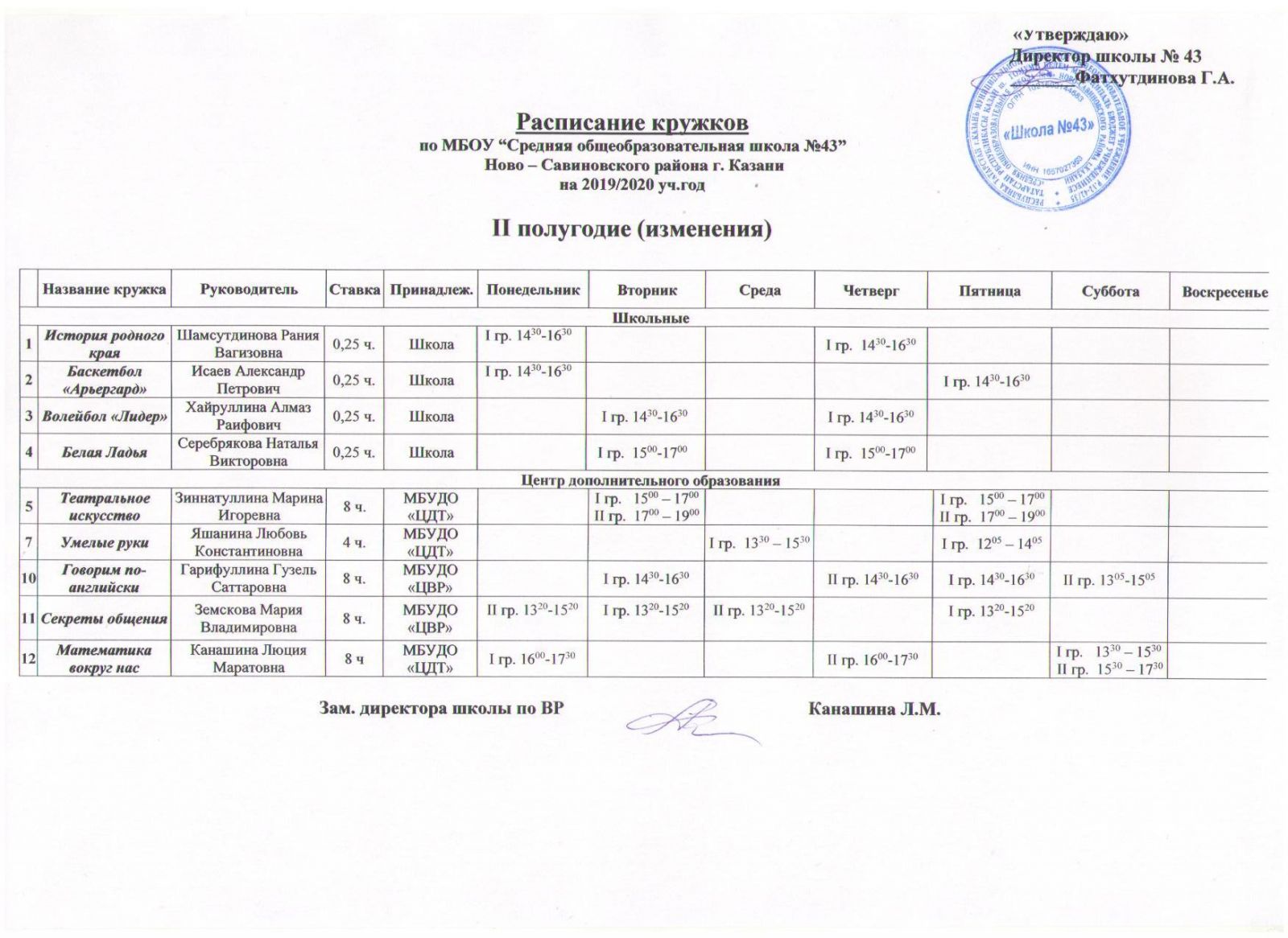 Расписание кружков на 2019-2020 : 1 полугодие 2 полугодие 2 полугодие - измененное измененное с 4 четверти