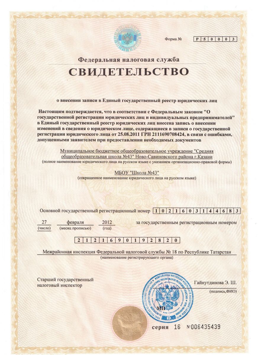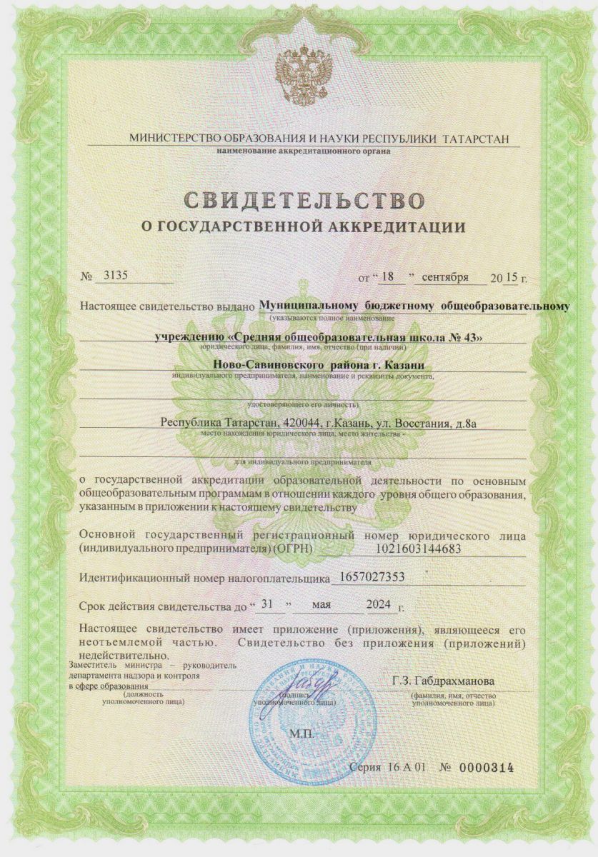 МБОУ «Средняя общеобразовательная школа №43» Ново-Савиновского района г. Казани