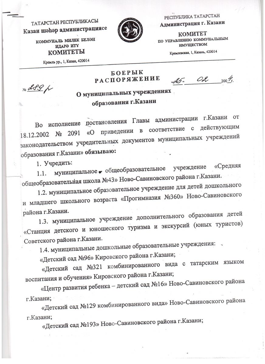 Распоряжение об учреждении образовательного учреждения: 1 2 3
