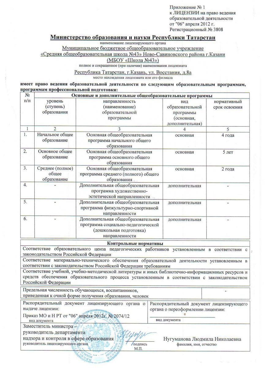 МБОУ «Средняя общеобразовательная школа №43» Ново-Савиновского района г. Казани