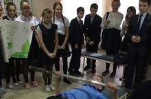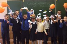 Уроки добра прошли во всех классах. Учащиеся начальной школы работали над проектом "Дорога в ДОБРО". Гость первоклассников - корреспондент 1 Канала Светлана Костина.