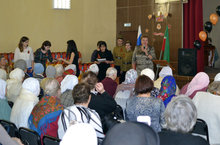 Литературно-музыкальную композицию «Не женщины придумали войну» представили ученики 9Б класса. Постановка рассказывала о судьбах женщин в годы Великой Отечественной войны. Приглашены: ветеран ВОВ Галеева Р.Х., дети войны, ученики школы.