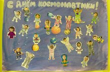 Ребята 1Д класса представили себя в роли космонавтов и изготовили стенгазету, посвященную дню Космонавтики