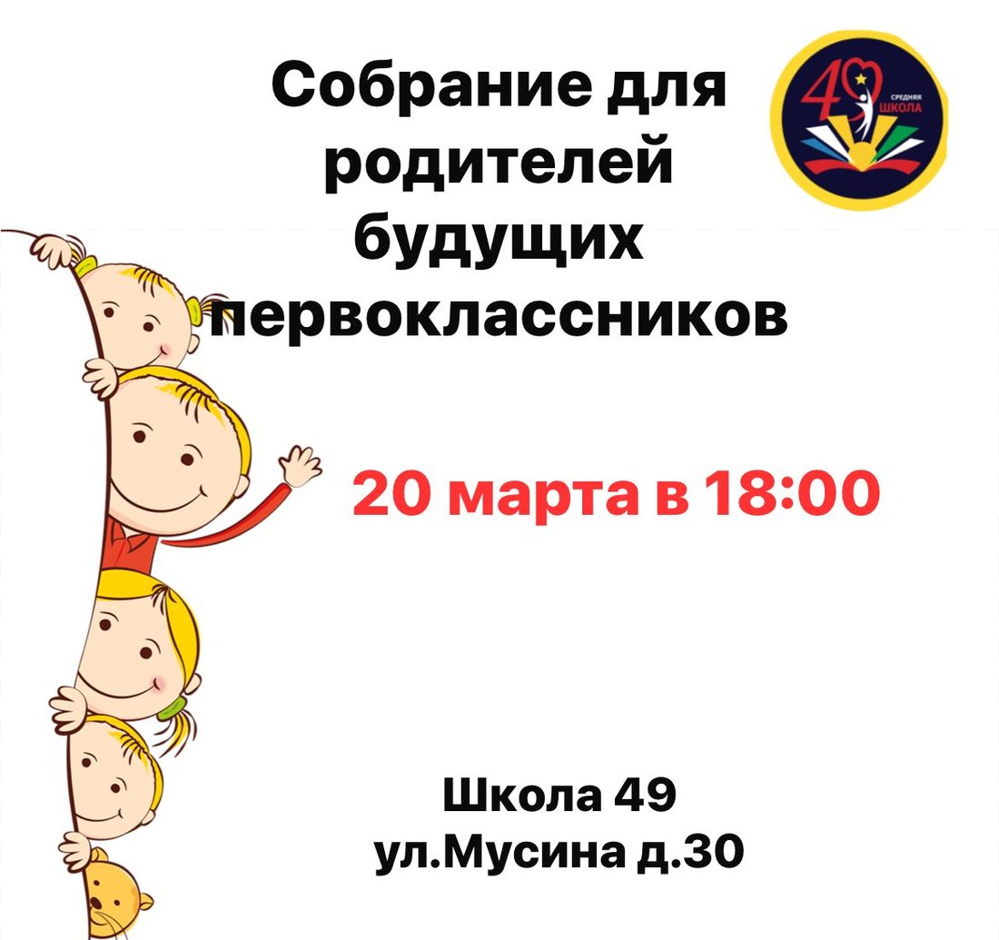 20 марта 2024г. в 18:00 пройдёт собрание для родителей будущих первоклассников.