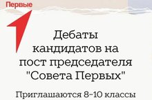 10 октября в нашей школе пройдут дебаты кандидатов на пост председателя "Совета Первых". Поддержим наших инициативных ребят.