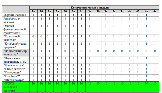 План внеурочной деятельности на уровень начального общего образования на 2025-2026 уч.год
