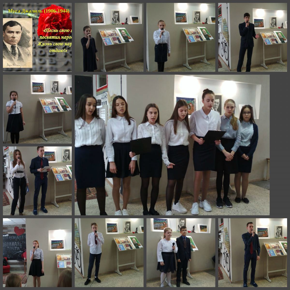 Опубликовано: 15.02.2019Сегодня в нашей школе прошра поэтическая перемена, посвященная творчеству Мусы Джалиля. Учащиеся нашей школы рассказали о жизни и творчестве поэта. Так же прочитали его произведения.