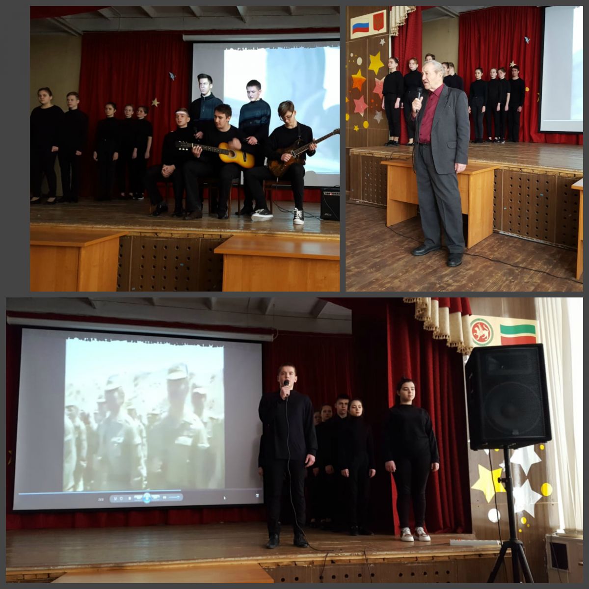 Учащиеся 9 А класса, под руководством учителя истории Ивашкевич И.М., выступили с литературно-музыкальной композицией «Афганистан: наша память и боль…» Они исполнили песни и прочитали стихотворения, написанные воинами-афганцами. На мероприятие был приглашён Акчурин Р.В. - отец Акчурина М.Р., выпускника нашей школы, участника войны в Афганистане, погибшего при исполнении воинского долга.