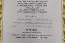 27 января прошёл муниципальный этап Республиканского конкурса отрядных вожатых "Замечательный вожатый - 2020". Ученица нашей школы Прокопьева Эльвина (10 а) заняла 3 призовое место. Поздравляем! Благодарность в подготовке к конкурсу выражаем педагогу-организатору Яковлевой Л,П,