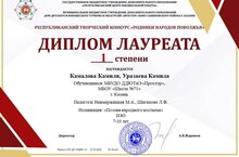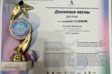 5 апреля в г. Казани прошел Всероссийский конкурс вокального и хореографического искусства "Движение весны", где принимали участие 115 номеров. Среди участников конкурса была и ученица 6Б класса Хакова Камилла. В номинации "Вокал" она была удостоена диплома лауреата 1 степени и кубка победителя.