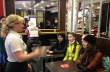 В конце экскурсии ребята задавали много вопросов. Например, «Как работает контроль качества продукции?», «Какие требования предъявляются к персоналу ресторана?», «Какая почасовая оплата труда?» и «Какие возможности карьерного роста в Компании?».