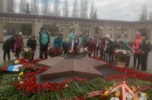 Сегодня учащиеся начальной школы в Парке Победы возложили цветы к Вечному огню колоннады мемориала Славы