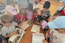 Безнең кунакка 32 нче балалар китапханәсеннән китапханәче килде. Балалар китапханәсе китап күргәзмәсе оештырды, шулай ук нигез салу буенча мастер-класс үткәрде. Балалар үзләре өчен китапның нигезен җәйге чәчәкләрнең матур сурәтләре һәм яраткан әсәрләреннән атаклы цитаталар белән бизәп ясый алганнар. Балалар туган якны өйрәнү әдәбиятының яңалыкларын һәм тылсымлы әкиятләрне карадылар.