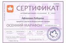 Учащиеся нашей школы приняли участие во Всероссийском конкурсе "Осенний марафон. Иностранный язык". Ученики показали хорошие результаты. Афзалова Роберта стала 15 в России и заняла 1 место в регионе. ПОЗДРАВЛЯЕМ!!!