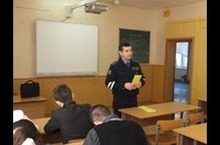 В рамках декады военно-патриотической работы, посвященной празднованию Дня защитника Отечества, в 5В и 6Б МЧС классах прошли "Уроки мужества" с участием выпускника школы 2012 года, рядового внутренней службы МЧС - Габитова Тимура.