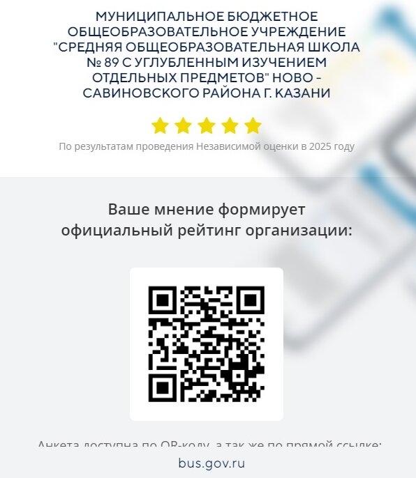 МБОУ «Средняя общеобразовательная школа №89 с углубленным изучением отдельных предметов» Ново-Савиновского района г.Казани - новости