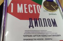 Чуркин А - 1 место в компетенции "Производство мебели - юниоры".