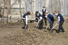 6 апреля учащиеся школы вышли на средник в рамках участия в двухмесячнике по санитарной очистке города. Ребята ворошили снег, провели подборку мусора на пришкольной территории.